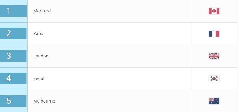 2017 QS最佳大學(xué)城市排名發(fā)布,加拿大蒙特利爾從去年的第七位升至第一,終結(jié)巴黎的五連冠。巴黎掉至第二位,主要是因?yàn)樵谥Ц赌芰拖蛲葍煞矫娴梅窒陆怠惗赜扇ツ甑牡谖迕仙恋谌?,去年第十名的首爾升至第四,而墨爾本則由去年的第二跌至第五。中國最好成績是排在第11位的香港,上海和北京分列第25和30名。(美通社,2017年2月15日倫敦)