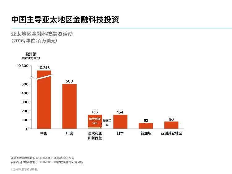 埃森哲研究發(fā)現(xiàn),在中國企業(yè)一系列重量級交易的帶動(dòng)下,2016年全球金融科技企業(yè)的投資攀升至232億美元,較上年度增長10%。2016年亞太地區(qū)的金融科技融資規(guī)模實(shí)現(xiàn)翻番,首次超越北美,中國貢獻(xiàn)了亞太地區(qū)投資總額的九成。中國兩大電子商務(wù)巨頭阿里巴巴和京東成為了主要的金融科技投資者。其中規(guī)模最大的一筆交易發(fā)生在去年四月,阿里巴巴集團(tuán)旗下的螞蟻金服籌資45億美元。(美通社,2017年3月6日北京)