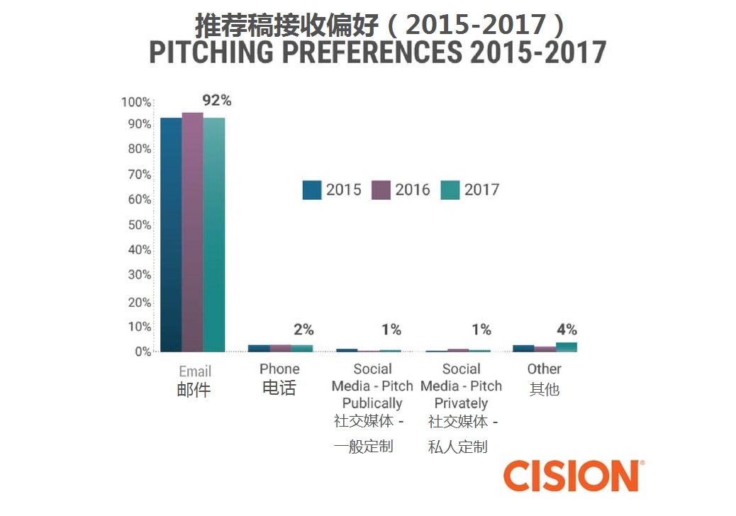 新聞記者現(xiàn)在更傾向于使用圖片、視頻、信息圖和用戶生成的多媒體內(nèi)容,而不只是數(shù)據(jù)。盡管使用社交媒體的頻率在增加,但只有44%的新聞記者認(rèn)為社交媒體是可靠的信息來源,這一比例較2016年下降7%。另外,92%的新聞記者更喜歡通過電子郵件的方式接收公關(guān)推薦稿,他們對公關(guān)專員提出的最重要建議是,研究以前的新聞報道,為新聞記者提供他們希望看到的定制推薦稿。(美通社,2017年3月28日芝加哥)