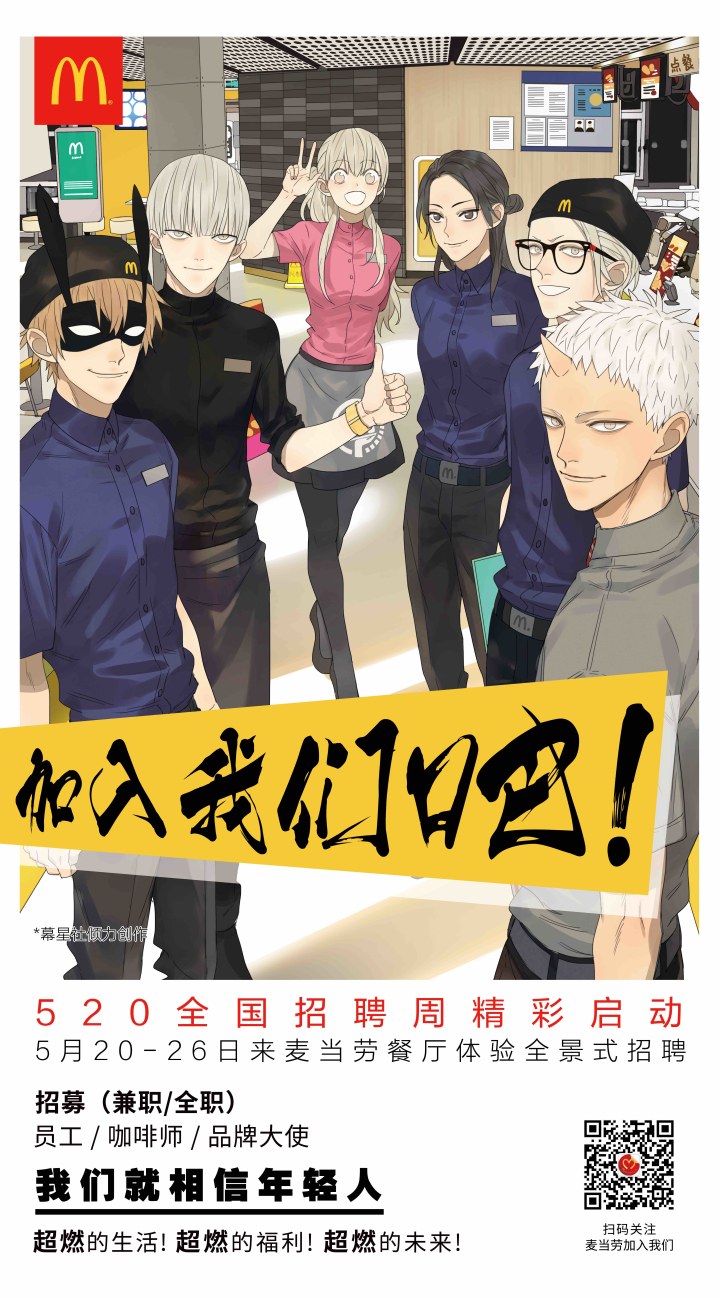 麥當(dāng)勞中國于5月20日啟動2017年全國招聘周。從5月20日到26日間指定時(shí)段,求職者前往全國2400家任意一家麥當(dāng)勞餐廳,即可體驗(yàn)全景式招聘,最快24小時(shí)極速入職。520全國招聘周期間,求職者可在指定時(shí)段到任意一家麥當(dāng)勞餐廳,在品牌偶像帶領(lǐng)下參觀工作和休息場所,了解麥當(dāng)勞的企業(yè)文化、培訓(xùn)項(xiàng)目、職業(yè)發(fā)展路徑以及員工激勵(lì)活動。