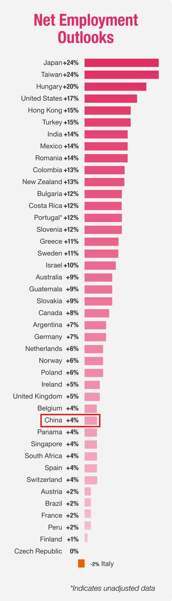 萬寶華盛ManpowerGroup最新的雇傭前景調(diào)查顯示,2017年第三季度,受調(diào)查的43個(gè)地區(qū)中,有41個(gè)地區(qū)的雇主計(jì)劃擴(kuò)大招聘。其中,招聘意愿最強(qiáng)烈的地區(qū)是日本、臺灣、匈牙利和美國,而意大利、捷克、芬蘭等地的雇主招聘意愿最低。亞太地區(qū),中國和新加坡兩地的雇主招聘意愿最低。(美通社,2017年6月11日洛杉磯)