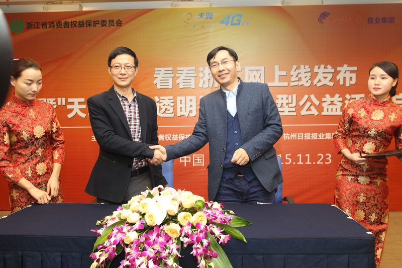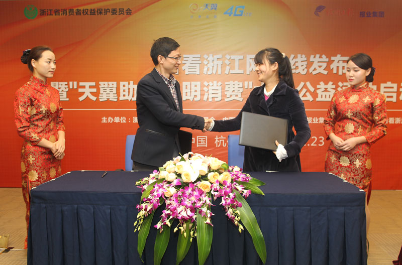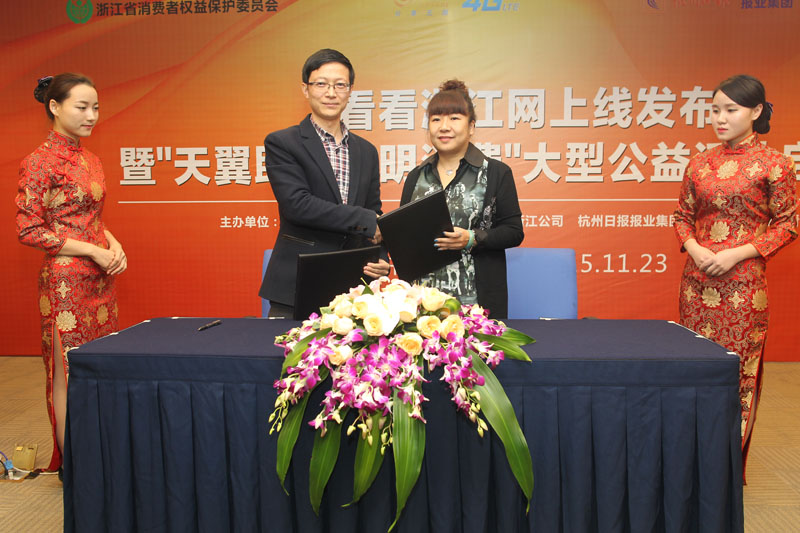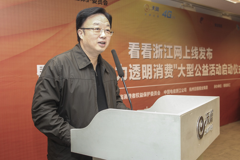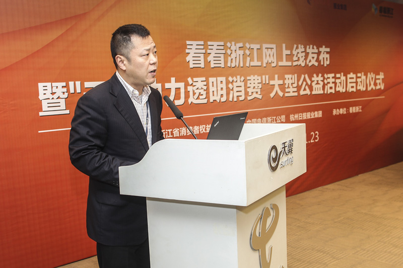 在看看浙江網(wǎng)上線發(fā)布現(xiàn)場,由浙江省消費者權益保護委員會、中國電信浙江公司和杭州日報報業(yè)集團共同主辦,看看浙江網(wǎng)承辦的“天翼助力透明消費”大型公益活動同時啟動。