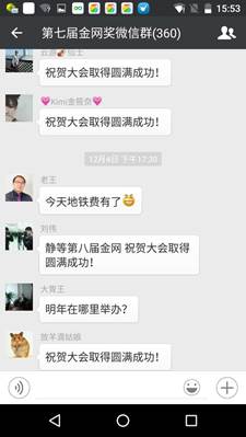 本屆金網(wǎng)獎(jiǎng)一大亮點(diǎn)是建立了參會(huì)嘉賓微信群,群成員一度接近500人。通過(guò)微信群,會(huì)前發(fā)布了會(huì)議預(yù)熱及議程預(yù)告,會(huì)中觀眾實(shí)現(xiàn)了即時(shí)互動(dòng),共同熱烈地討論和消化嘉賓的演講干貨,會(huì)后大家繼續(xù)保持著對(duì)網(wǎng)絡(luò)營(yíng)銷話題的交流。