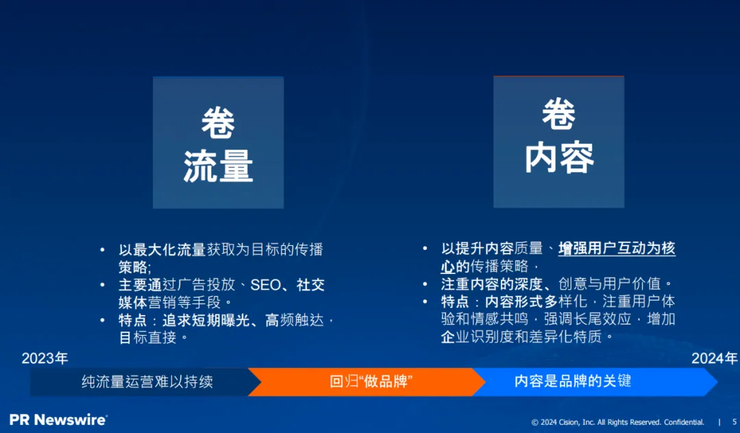 此前企業(yè)的傳播重點(diǎn)在于“卷流量”,即通過(guò)外部手段最大化獲取曝光。這包括廣告投放、SEO優(yōu)化和社交媒體營(yíng)銷(xiāo)等方式。然而,獲取流量的成本不斷上升,流量紅利正在逐漸消退,且用戶的注意力被分散在多個(gè)平臺(tái)上。
