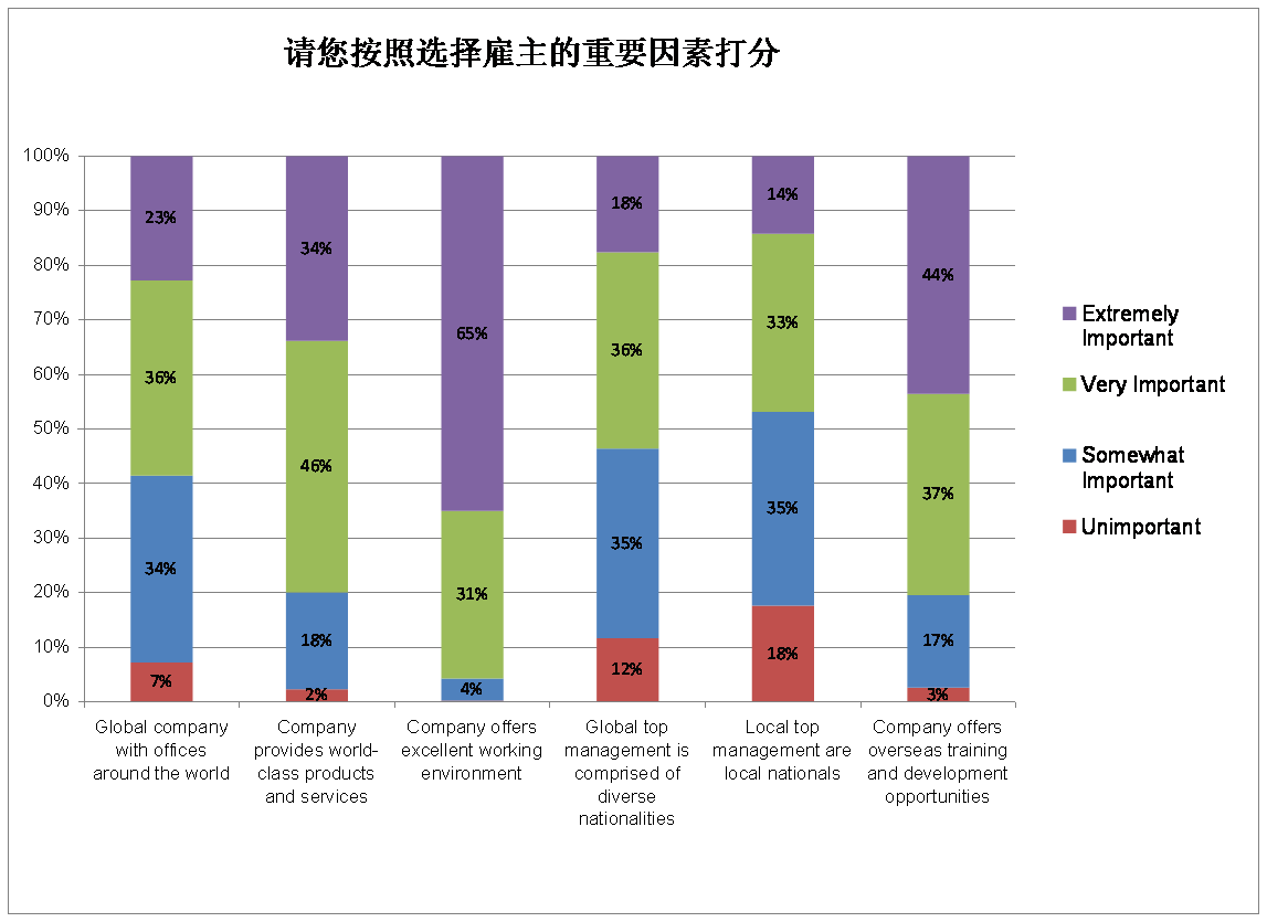 “我們的分析表明,對(duì)‘良好的工作環(huán)境’的追求與對(duì)美資、英資企業(yè)的青睞度呈正向關(guān)聯(lián),而與對(duì)亞洲企業(yè)的青睞度卻呈反向關(guān)聯(lián)。如果其他因素不變,大多數(shù)應(yīng)聘者不會(huì)選擇中資企業(yè)。一個(gè)重要原因就是對(duì)工作環(huán)境的不良印象。這樣的印象會(huì)嚴(yán)重影響中資企業(yè)在亞洲市場(chǎng)吸引頂尖人才的效果?!扁埠餐貋喬珔^(qū)人力資本咨詢業(yè)務(wù)負(fù)責(zé)人 Rick Payne 分享了他的看法。