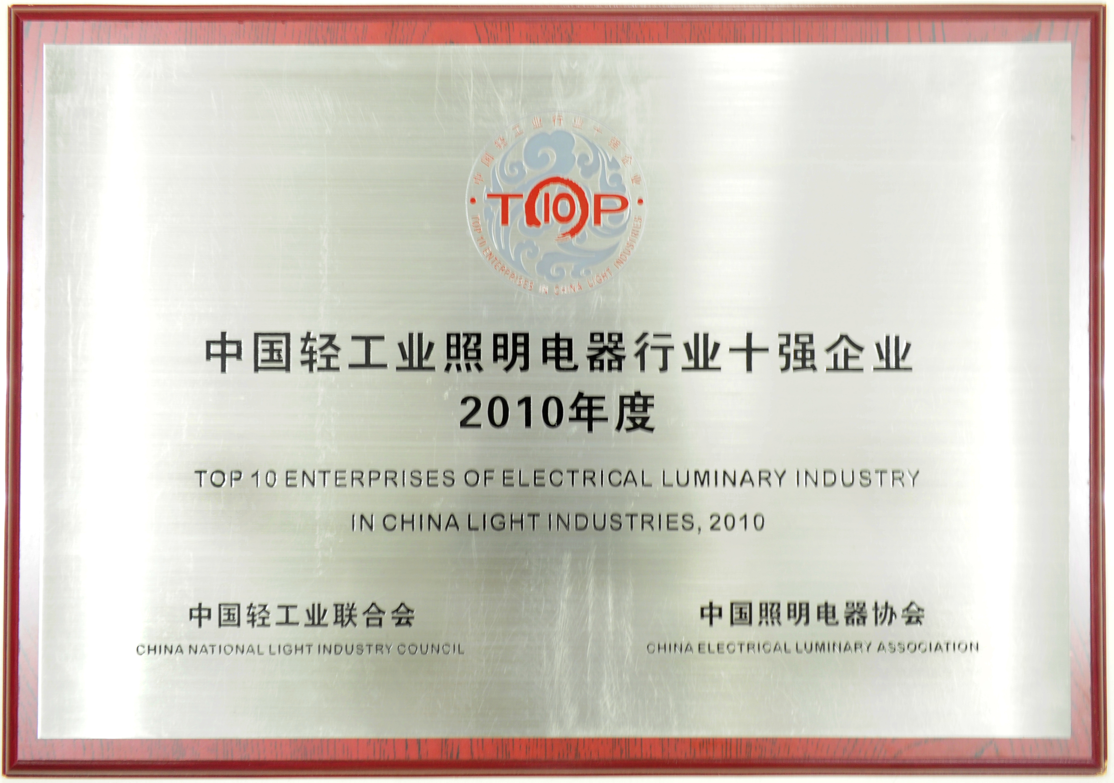 2010年,26家行業(yè)協(xié)會(huì)的29個(gè)行業(yè)參與此次評(píng)價(jià)工作,包括照明電器、自行車、五金、鐘表、玩具等行業(yè)。經(jīng)各行業(yè)協(xié)會(huì)確認(rèn),中國(guó)輕工業(yè)聯(lián)合會(huì)終審,共有雷士照明等企業(yè)榮登“2010年度中國(guó)輕工業(yè)十強(qiáng)企業(yè)”榜單。