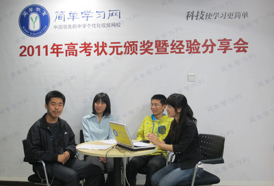 北京2011年10月31日電 /美通社亞洲/ -- 2011年10月30日上午10點(diǎn),由簡(jiǎn)單學(xué)習(xí)網(wǎng)主辦的“201年高考狀元頒獎(jiǎng)暨經(jīng)驗(yàn)分享會(huì)”在簡(jiǎn)單學(xué)習(xí)網(wǎng)北京總部拉開(kāi)帷幕。語(yǔ)文特級(jí)教師王大績(jī)老師、簡(jiǎn)單學(xué)習(xí)網(wǎng)教學(xué)總監(jiān)曾萍出席了頒獎(jiǎng)典禮,為11名高考狀元、優(yōu)秀學(xué)員頒獎(jiǎng),整個(gè)頒獎(jiǎng)典禮通過(guò)網(wǎng)絡(luò)在線直播,并通過(guò)簡(jiǎn)單學(xué)習(xí)網(wǎng)新浪微博、騰訊微博等同步直播,數(shù)千名全國(guó)各地學(xué)員在線觀看了本次頒獎(jiǎng)典禮。