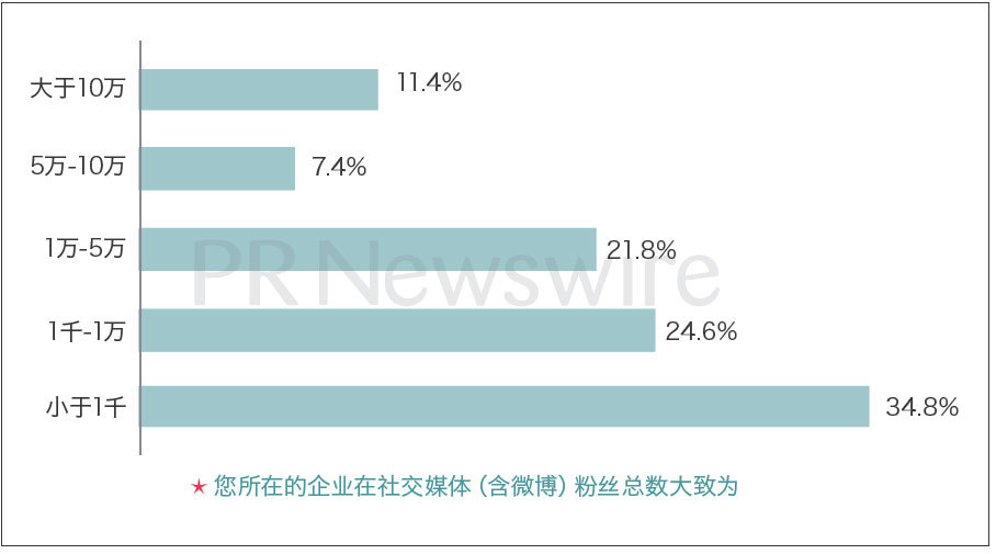 您所在的企業(yè)在社交媒體(含微博)粉絲總數(shù)大致為