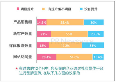 在過去的12個(gè)月中,您所在的企業(yè)通過社交媒體平臺(tái)進(jìn)行品牌宣傳,在以下幾方面的效果為