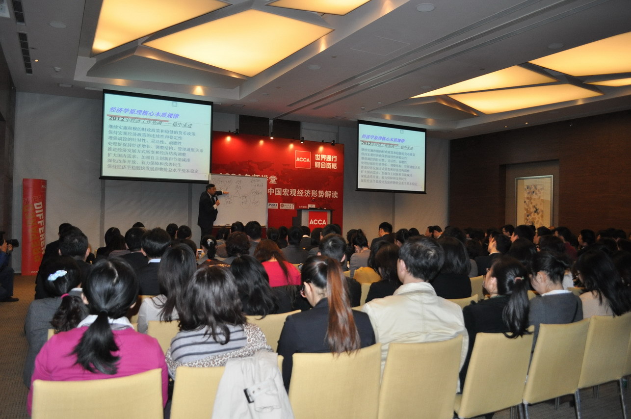 深圳2011年12月16日電 /美通社亞洲/ -- ACCA(特許公認(rèn)會(huì)計(jì)師公會(huì))昨日下午在深圳舉辦名師講堂,特邀長(zhǎng)期從事經(jīng)濟(jì)金融理論教學(xué)工作并就多個(gè)財(cái)會(huì)金融學(xué)科領(lǐng)域進(jìn)行研究的北京大學(xué)匯豐商學(xué)院的許健教授解讀2012年全球和中國(guó)經(jīng)濟(jì)形勢(shì)?,F(xiàn)場(chǎng)共有逾150名 ACCA 會(huì)員、學(xué)員及來自 ACCA 認(rèn)可雇主、高校和合作伙伴的財(cái)會(huì)金融界人士參會(huì),顯示了他們對(duì)未來可能的經(jīng)濟(jì)發(fā)展趨勢(shì)的重視。