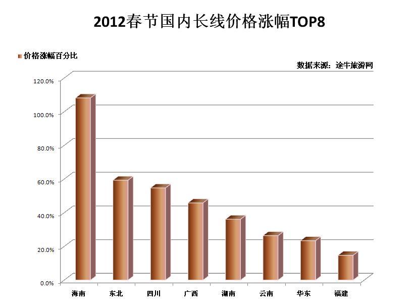每年春節(jié)期間,多數(shù)旅游熱門方向都會有較大幅度的價格上漲,今年“春游”也不例外,多數(shù)熱門方向環(huán)比漲幅都在30%以上,部分方向漲幅甚至高達80%或出現(xiàn)翻番?!皟r格上漲對市民的出游熱情影響不大,如今年上海出發(fā)至澳洲新西蘭方向的高端線路漲幅達到了71.4%,上海出發(fā)至日本方向的高端線路上漲近58%,但出游人數(shù)卻不降反增?!蓖九B糜尉W(wǎng)度假產(chǎn)品部總監(jiān)魏斌對市民出境游熱情表示看好。