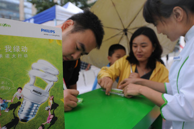 “對綠色、節(jié)能、低碳的追求不是一蹴而就的,重要的是如何形成一套相應的生活方式和理念。只有每個人從身邊的點滴入手,節(jié)能、低碳這一人類發(fā)展的共識才能得以最終實現?!倚袆樱揖G動’就是我們致力于推廣這一理念的重要平臺?!憋w利浦照明大中華區(qū)高級市場總監(jiān)余泳濤先生說。在路演活動現場,很多消費者對于節(jié)能燈和白熾燈的對比產生了濃厚的興趣,“用更少的電,不僅有益于社會,對我們的生活也是另一種實惠,一舉兩得?!币晃粎⑴c游戲的女士這樣認為。
