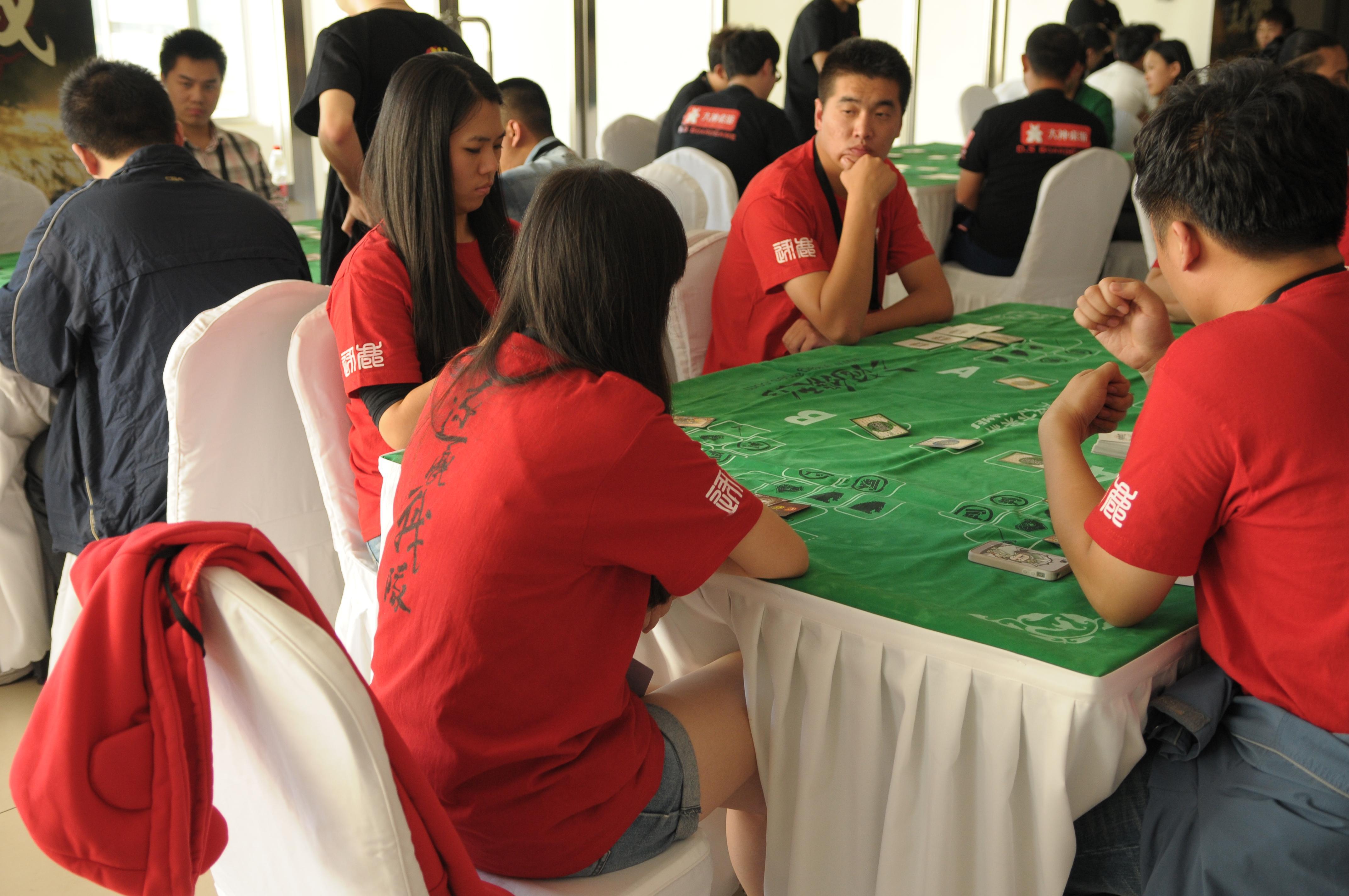 本次比賽中還有了不少亮點(diǎn),比如北京神之隊(duì)?wèi)?zhàn)隊(duì)中,有一對情侶搭檔,他們的相識便是通過三國殺,另外,本次比賽的很多戰(zhàn)隊(duì)中都有美女選手,她們表示,四年前三國殺剛出現(xiàn)的時候,玩家主要以男生居多,而如今在大學(xué)校園里,已經(jīng)涌現(xiàn)出越來越多的女性高級玩家。