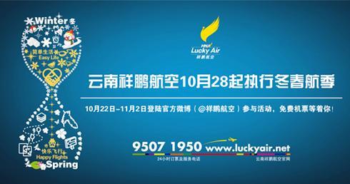 除此之外,云南祥鵬航空還為旅客們準(zhǔn)備了超值免票大禮。10月22日-11月2日,云南祥鵬航空的新浪官方微博(@祥鵬航空 http://e.weibo.com/luckyairline )特別舉辦了關(guān)于2012/13冬春航班換季的有獎問答活動,廣大微博用戶們可于該時間段內(nèi)按照要求參與活動并正確回答微博問題,就有機(jī)會帶走4張免費(fèi)機(jī)票大獎,更有眾多精美小禮品贈送。