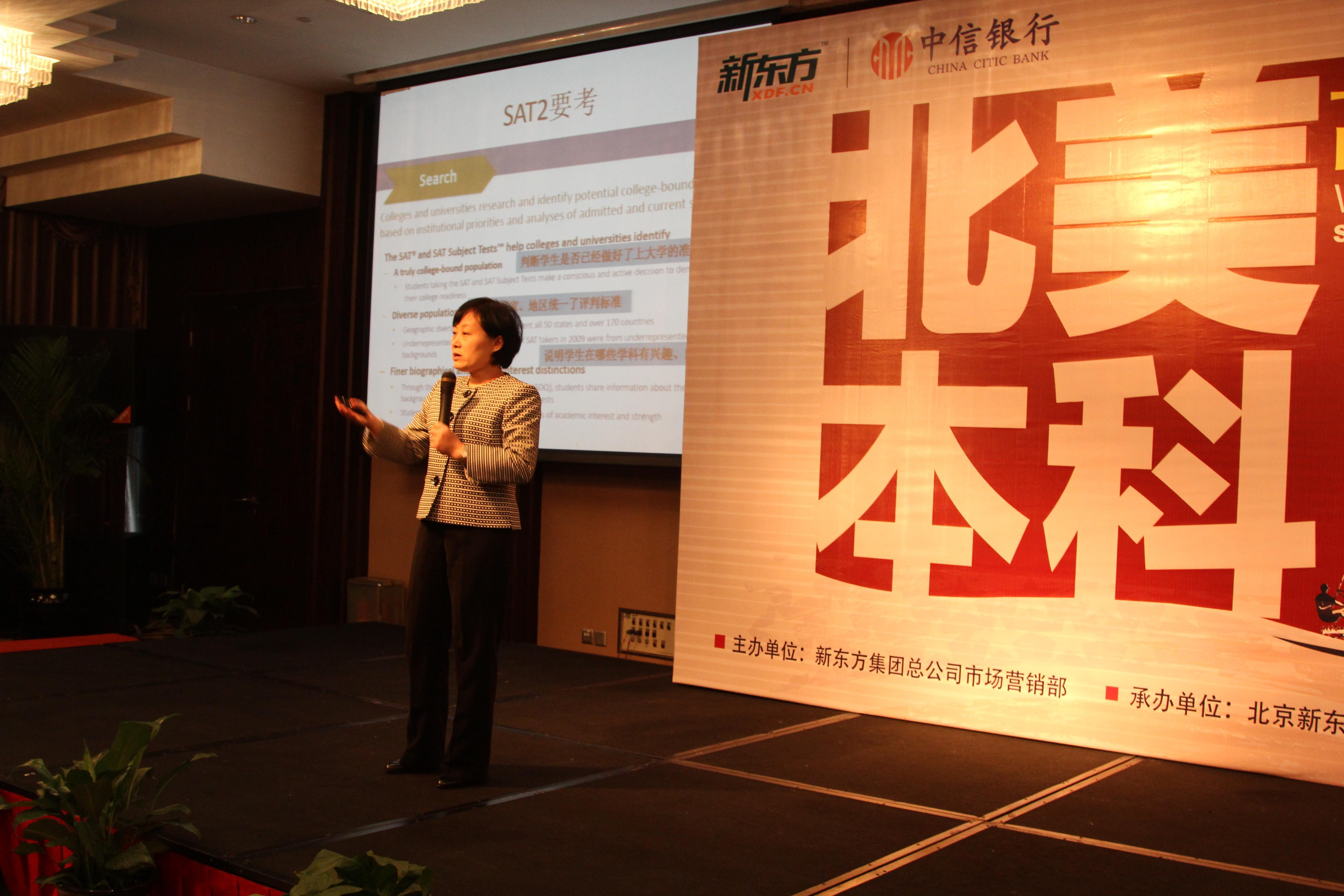 來自北京新東方的托福、SAT高分學(xué)員還在現(xiàn)場分享了自己的備考經(jīng)驗(yàn)。來自北京171中學(xué)的張同學(xué)取得了托??荚?11分,SAT考試2210 的好成績。他介紹,之所以取得較好的成績在于兩點(diǎn),一是考試之前長時間的積累,二是考前短期熟悉考試形式。平時多聽VOA、多背誦美文、多讀英文小說并通過“自言自語”的方式練習(xí)口語是平時提高英語水平的方法。而在SAT考試中,張同學(xué)則建議大家大量閱讀,掌握單詞并大量做題掌握考試形式。來自北京八中的郭同學(xué)取得了托福117分、SAT2260分的好成績。她介紹,面對考試平時的積累最為重要。面對SAT閱讀,一定要養(yǎng)成好的閱讀習(xí)慣,客觀面對自己的英文水平并挑選適合自己的、感興趣的英文書籍進(jìn)行閱讀以便提高閱讀速度。而面對數(shù)學(xué)單項,中國的學(xué)生尤為注意的是不要粗心。面對寫作單項,除了要做好閱讀積累還要對語法有扎實(shí)的掌握。