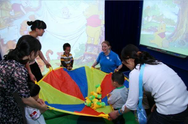 迪士尼英語(yǔ) Hello, World! 啟蒙探索班課程將兒童多元智能理論與迪士尼豐富的故事資產(chǎn)進(jìn)行了完美整合。家長(zhǎng)需要和孩子一起參加,每一節(jié)課將由一名外籍培訓(xùn)師和一名中英雙語(yǔ)都很流利的培訓(xùn)專員共同授課。通過(guò)不同的活動(dòng),孩子們將在一個(gè)完全融入的雙語(yǔ)環(huán)境中,全面激發(fā)孩子的智力和肢體等能力,例如,孩子們將通過(guò)音樂(lè)和歌曲來(lái)激發(fā)韻律智能、借助瑜伽來(lái)激發(fā)粗大肢體技巧、以及團(tuán)隊(duì)活動(dòng)來(lái)增強(qiáng)團(tuán)隊(duì)意識(shí)和分享等。所有的迪士尼外籍培訓(xùn)師都經(jīng)過(guò)了專門教授兒童英語(yǔ)的 TEFL-C 資格培訓(xùn)。