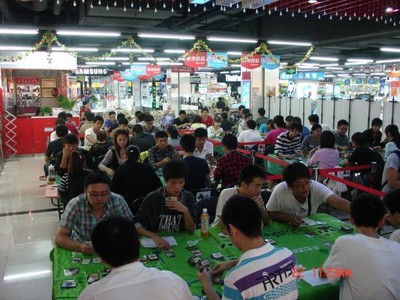 24日,在北京悠唐生活廣場二層,來自全國的32強戰(zhàn)隊齊聚一堂,這是自新3V3制度實施以來,全國高手第一次正面交鋒,其中還有首次入圍決賽的香港、臺灣選手。比賽現(xiàn)場周圍吸引了大批人群圍觀,他們中有喜愛《三國殺》的路人,也有專程趕來的《三國殺》高級玩家,由圈內著名玩家組成的“殺軍團”也趕赴現(xiàn)場觀戰(zhàn),并與王戰(zhàn)組委會人員親密交流??倹Q賽采用小組循環(huán)晉級賽制,每支戰(zhàn)隊將與同組其他戰(zhàn)隊分別進行一輪兩局的比賽,經過一天的緊張廝殺,決出了八強戰(zhàn)隊。他們分別是來自北京的“木牛流馬”,上海的“JASSFINE” 、“奇跡”和 “JOYPIE” 戰(zhàn)隊、廣州的“李牧”、哈爾濱的“狂想曲軒轅逐鹿”、長沙的“追風逐鹿”。特別值得一提的是首次參加王者之戰(zhàn)的臺灣代表隊 -- “很低調”,以黑馬的姿態(tài)從死亡之組里,擊敗了兩支奪冠熱門隊,脫穎而出進入8強。令人遺憾的是,去年問鼎王戰(zhàn)冠軍的“二琪飄逸流-游領GL”以及本屆奪冠熱門“臺臺-皮卡丘”戰(zhàn)隊均未能入圍8強。
