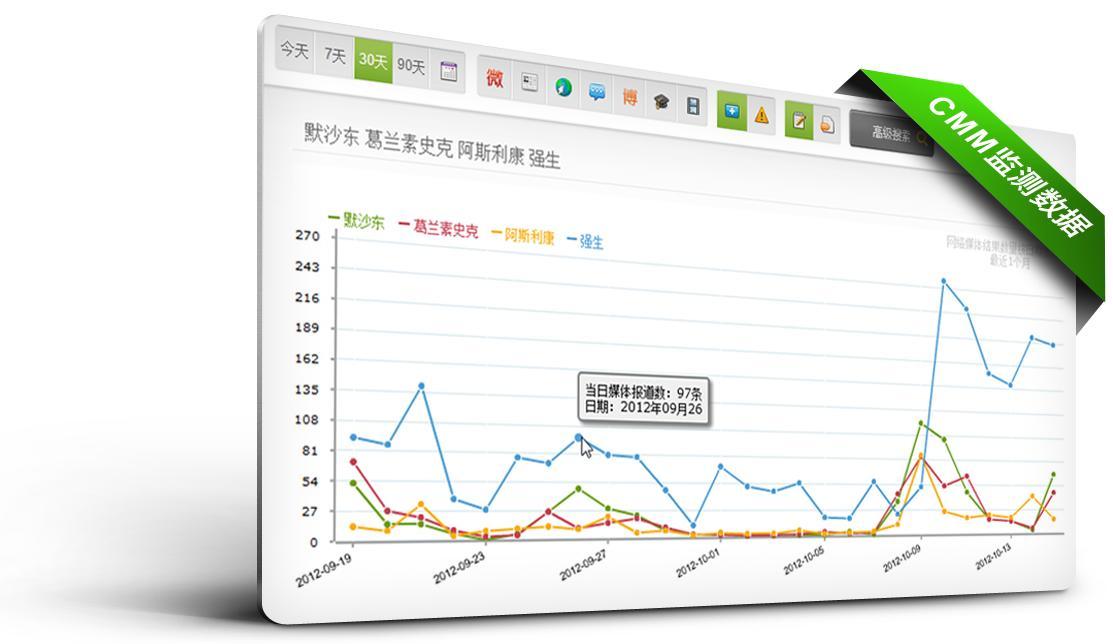 北京2012年12月10日電 /美通社/ -- 全球領(lǐng)先的企業(yè)傳播服務(wù)機(jī)構(gòu) -- 美通社今日宣布,旗下“中國網(wǎng)絡(luò)與社交媒體監(jiān)測”(China Media Monitoring,以下簡稱 CMM)完成重要升級(jí),通過重設(shè)關(guān)鍵詞體系、增加標(biāo)簽式數(shù)據(jù)篩選等,升級(jí)后的 CMM 將使用戶獲得更加精準(zhǔn)、快速、細(xì)分和直觀的媒體監(jiān)測結(jié)果。企業(yè)用戶可登錄 http://cmm.prnasia.com 了解詳情及申請?jiān)囉谩?/p>