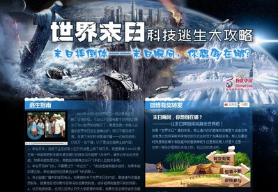 2012年12月17日,末日倒計時5天,Mo立方迎合時下熱門的世界末日話題,攜手“拯救休閑時光”的成都諾亞方舟酒店,以及“歐洲旅游專家”凱撒旅游成都分公司,推出聯(lián)合微博營銷活動“票在手,帶誰走”,參與活動的用戶即可獲得諾亞方舟酒店的限量船票,更有機會贏取凱撒旅游成都分公司價值20000多的歐洲5國11日豪華浪漫雙人游。