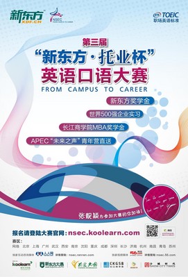 第三屆“新東方·托業(yè)杯”是以就業(yè)為主題的大學(xué)生英語口語大賽,立足于“實用、大眾、創(chuàng)新”,希望以此幫助大學(xué)生開拓英語學(xué)習(xí)思路、改善英語學(xué)習(xí)習(xí)慣、豐富英語學(xué)習(xí)途徑、提升英語實戰(zhàn)應(yīng)用,拓寬大學(xué)生的就業(yè)渠道,推動中國大學(xué)生人才發(fā)展。