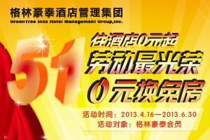 2013年4月16日至6月30日,格林豪泰推出的“勞動(dòng)最光榮,0元換免房”活動(dòng)?;顒?dòng)期間,格林豪泰會(huì)員只要通過(guò)官網(wǎng) 998.com、智能手機(jī)m.998.com、APP預(yù)訂并入住酒店、官網(wǎng)每日簽到等方式獲得足額的格林幣和推廣金,便可通過(guò)格林官網(wǎng)“積分商城”免費(fèi)兌換格林豪泰千家酒店任意一間/夜豪華客房。另外,根據(jù)客人的不同需求,也可兌換家居生活、數(shù)碼家電等精美好禮。(溫馨提示:格林幣越多可以?xún)稉Q的禮品越豐厚。)