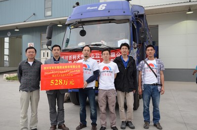 2013年4月21日中午12點20分思源工程、揚帆計劃的車隊滿載首批救援物資從成都向雅安進發(fā)