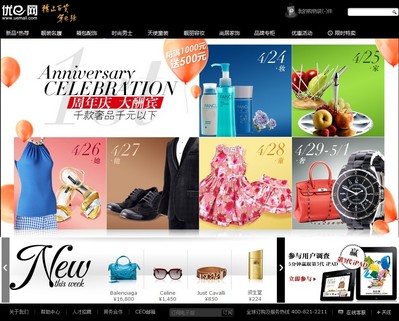 上海2013年4月23日電 /美通社/ -- 優(yōu)e網(wǎng)將在今年4月迎來兩周歲。在這兩年中,優(yōu)e網(wǎng)從一個(gè)創(chuàng)業(yè)型奢侈品網(wǎng)站發(fā)展成為奢侈品電商行業(yè)的領(lǐng)航者,目前,優(yōu)e網(wǎng)已聚集百余款國際頂級(jí)時(shí)尚大牌,上千款品類。