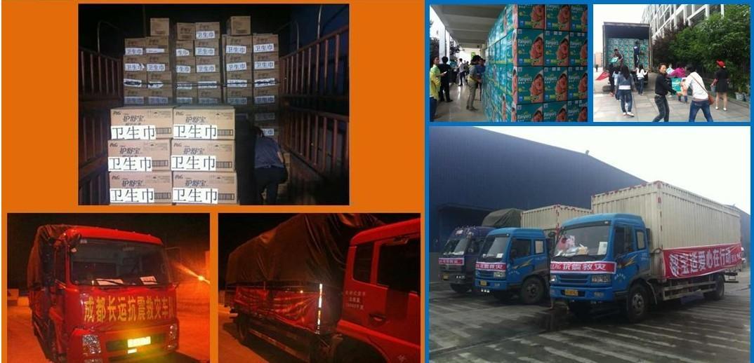 寶潔旗下品牌護舒寶,幫寶適,汰漬,金霸王及舒膚佳均在地震發(fā)生當天就緊急行動起來,調(diào)配馳援災區(qū)急需的衛(wèi)生巾,紙尿褲,電池,香皂,洗衣粉等產(chǎn)品價值超過355萬元。在幾家公益組織包括中國婦女發(fā)展基金會、四川省婦聯(lián)、四川民政廳、中國慈善總會、雅安慈善總會、中國兒童發(fā)展基金會和壹基金的鼎力支持和協(xié)同作業(yè)下,10萬包護舒寶,50萬片幫寶適,4000箱汰漬,20萬粒金霸王電池和10多萬塊舒膚佳除菌香皂已經(jīng)陸續(xù)運抵災區(qū)。
