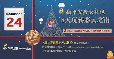 昆明2013年5月23日電 /美通社/ -- 時值海航創(chuàng)業(yè)二十周年和云南祥鵬航空開航七周年之際,2013年5月31日,云南祥鵬航空將開通首個昆明=上海直飛航班。首航期間,為回饋廣大旅客支持,云南祥鵬航空推出了往返均為350元的超值優(yōu)惠價格。