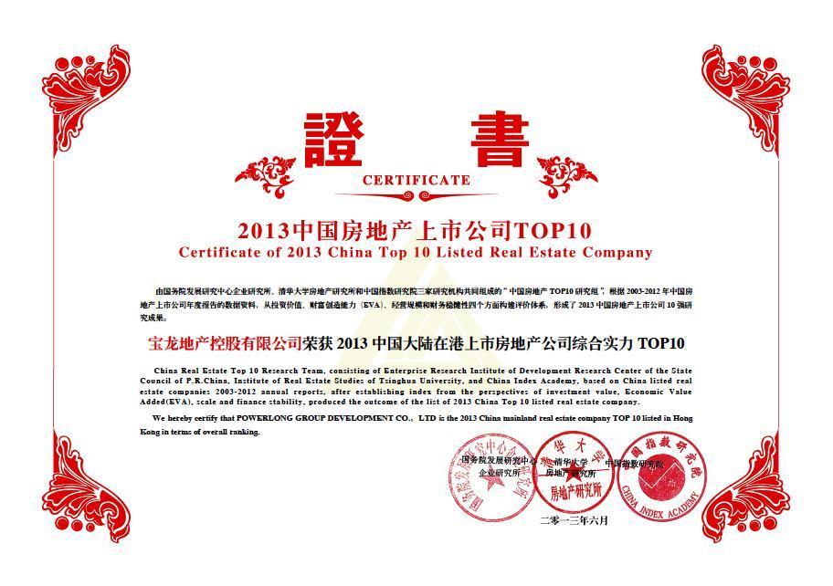 上海2013年5月31日電 /美通社/ -- 2013年5月31日,2013中國房地產(chǎn)上市公司研究成果發(fā)布會暨第十一屆中國房地產(chǎn)投融資大會在中國證券監(jiān)督管理委員會北京會議廳盛大召開。寶龍地產(chǎn)(HK.1238)再次獲得“2013大陸在港上市房地產(chǎn)公司綜合實力十強(qiáng)”、 “2013中國大陸在港上市房地產(chǎn)公司財務(wù)穩(wěn)健性十強(qiáng)”兩大獎項。