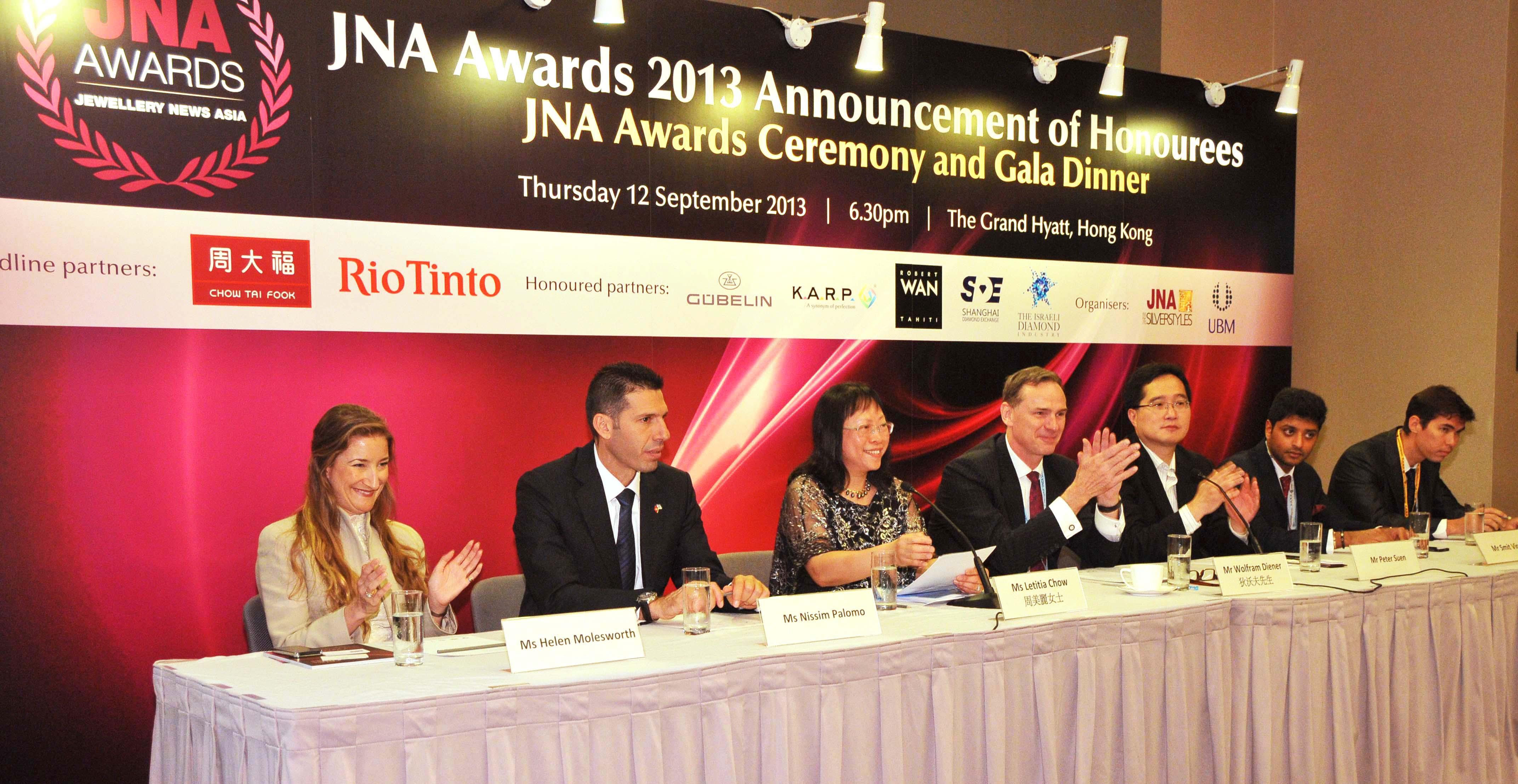 JNA 大獎(jiǎng)是亞洲地區(qū)珠寶業(yè)一項(xiàng)國(guó)際盛事,獎(jiǎng)項(xiàng)旨在嘉許有優(yōu)秀表現(xiàn)的業(yè)內(nèi)人士和企業(yè),表揚(yáng)他們?yōu)閬喼薜貐^(qū)珠寶業(yè)所作出的貢獻(xiàn)。大獎(jiǎng)?lì)C獎(jiǎng)典禮暨晚宴將于2013年9月12日(星期四)在香港君悅酒店舉行。