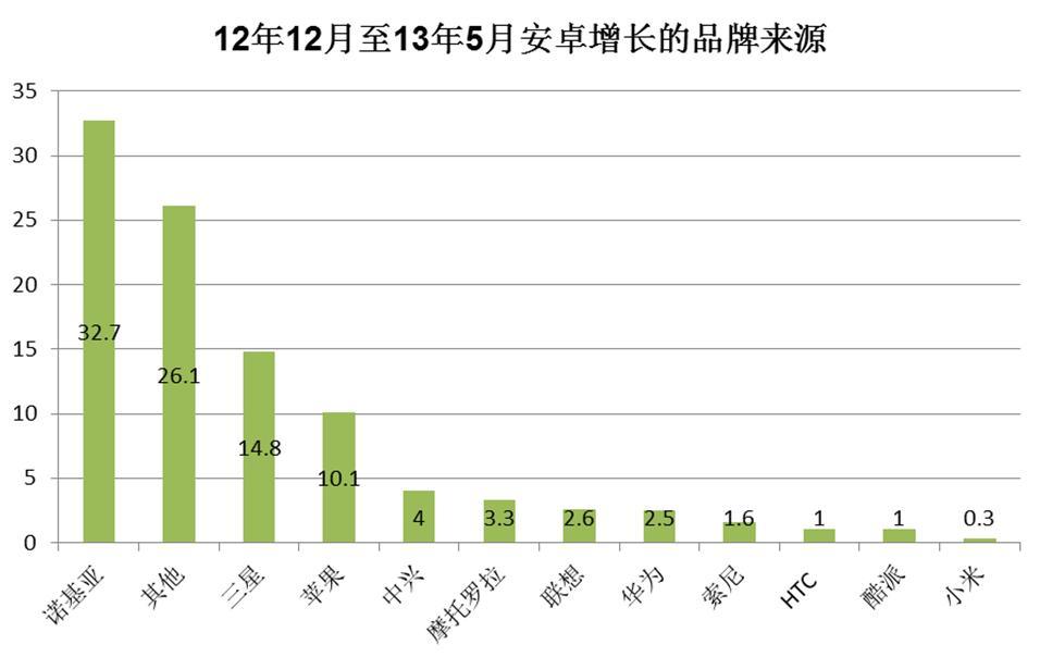 據(jù) Kantar Worldpanel ComTech 移動(dòng)通訊消費(fèi)者指數(shù)的研究數(shù)據(jù),安卓在中國(guó)城市的發(fā)展很大一部分歸功于原諾基亞用戶。自去年12月以來(lái)的六個(gè)月中,購(gòu)買安卓手機(jī)的用戶中有三分之一來(lái)自諾基亞,成為安卓在近期成長(zhǎng)的較大動(dòng)力。研究同時(shí)發(fā)現(xiàn),安卓的壯大不僅僅是來(lái)自功能機(jī)的升級(jí),同時(shí)很多用戶贏得于競(jìng)爭(zhēng)對(duì)手 iOS。在同期有百分之十的新安卓用戶曾經(jīng)使用過(guò)蘋果手機(jī),剩余的新用戶則來(lái)自市場(chǎng)份額較小的品牌,和國(guó)產(chǎn)二線品牌。