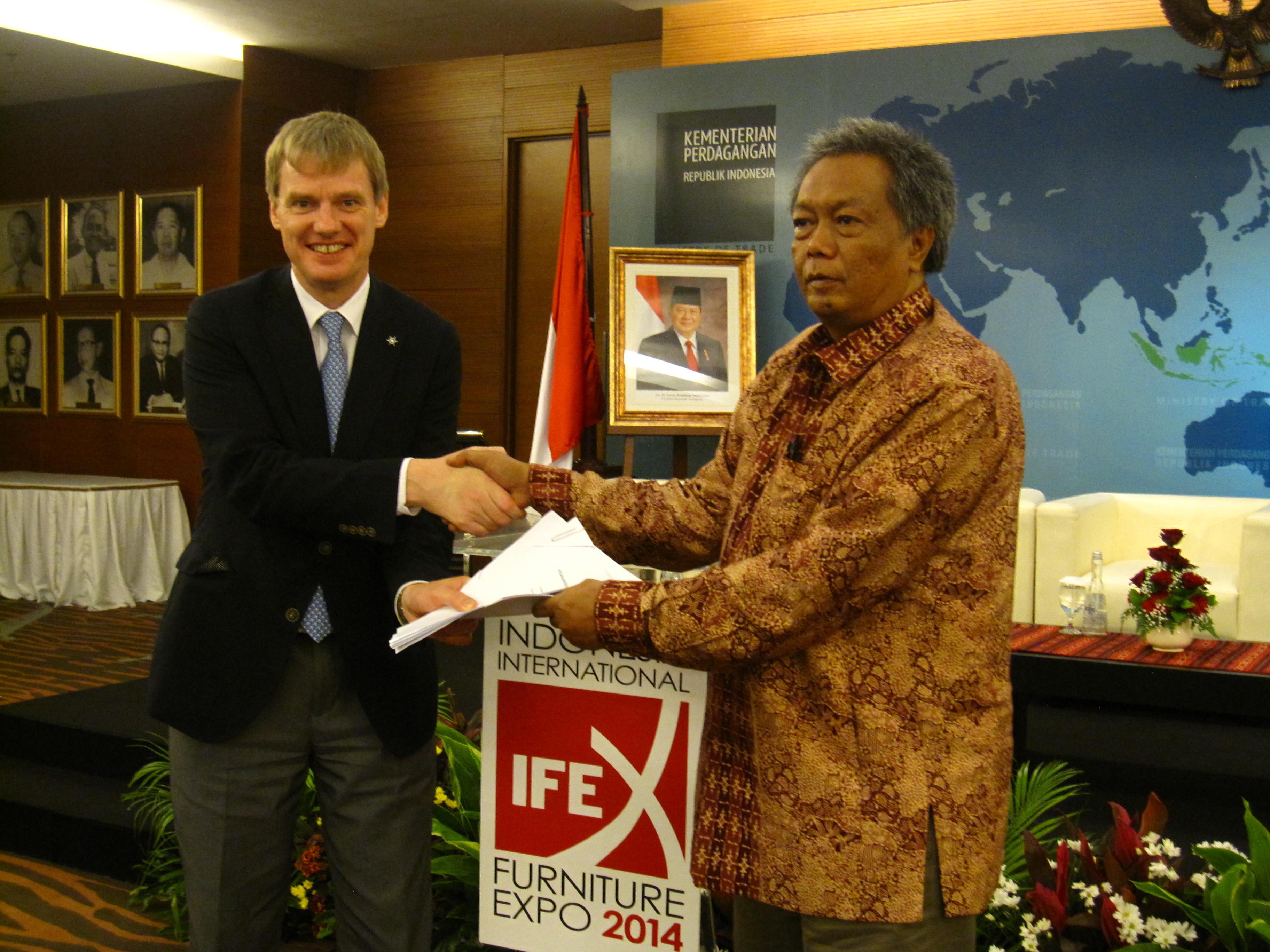印尼雅加達(dá)2013年7月9日電 /美通社/ -- 亞洲博聞聯(lián)同印尼家具協(xié)會 (AMKRI) 將舉辦印尼國際家具展 (IFEX)。展會將于2014年3月11至14日在雅加達(dá)國際展覽中心 (JI Expo) 及2014年3月12至15日在雅加達(dá)會議中心 (JCC) 舉行。亞洲博聞高級副總裁栗棲尹武與AMKRI主席Soenoto先生、印尼工業(yè)局農(nóng)業(yè)部部長Benny Wahyudi先生及印尼貿(mào)易局國家出口貿(mào)易發(fā)展部部長Gusmardi Bustami先生在7月5日于印尼貿(mào)易局舉行的新聞發(fā)布會中宣布本次合作。