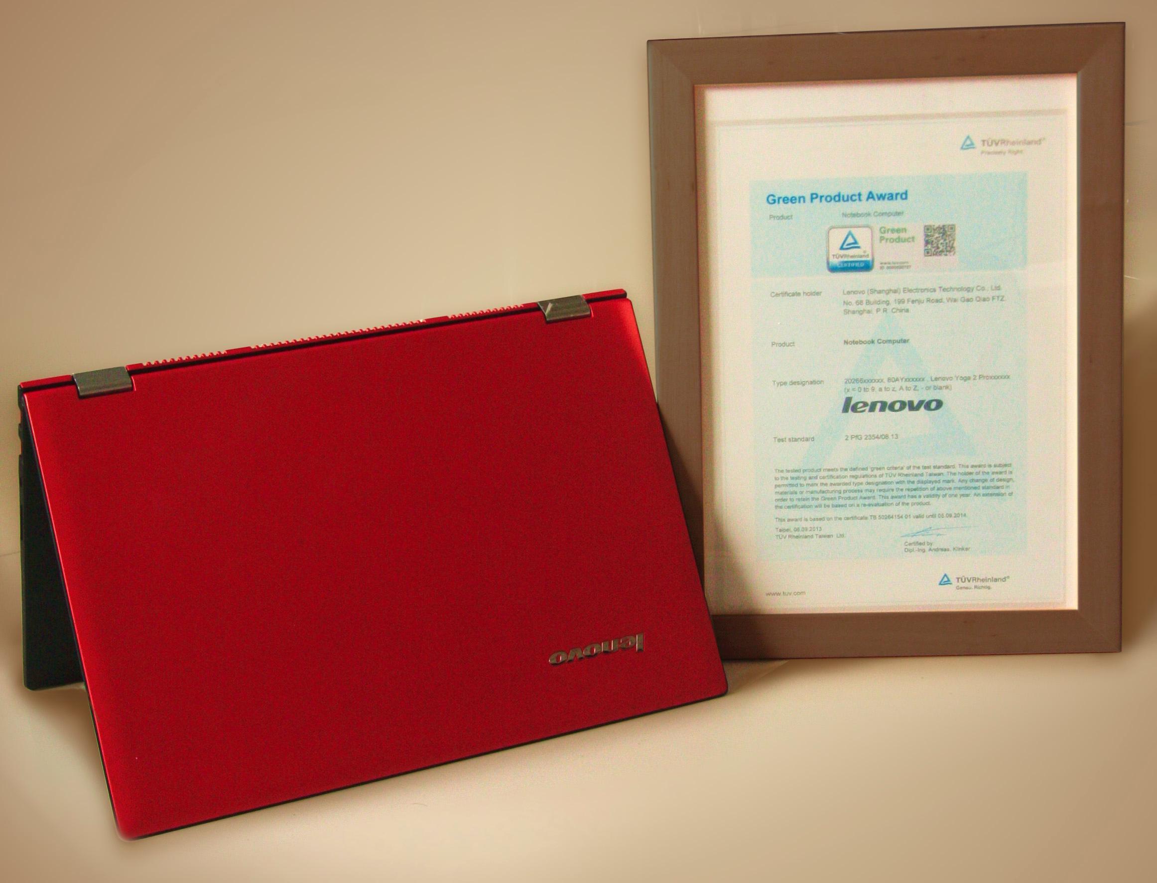 上海2013年10月8日電 /美通社/ -- 2013年9月25日,聯(lián)想Yoga 2 Pro筆記本在全球隆重上市。作為廣受業(yè)界及用戶好評的Yoga超級本第二代,Yoga 2是2013、2014年聯(lián)想集團(tuán)主推的明星款筆記本,而這款型號除了專業(yè)的優(yōu)異性能之外,更帶上了德國萊茵TUV的綠色產(chǎn)品標(biāo)志,是目前國內(nèi)為數(shù)不多的綠色產(chǎn)品認(rèn)證筆記本,并且是德國萊茵TUV頒出的首例筆記本綠色產(chǎn)品認(rèn)證。9月26日,德國萊茵TUV上海首席運(yùn)營官陸勛海、德國萊茵TUV大中華區(qū)電子電器產(chǎn)品服務(wù)銷售總經(jīng)理都江等于聯(lián)想上海的研發(fā)中心向聯(lián)想筆記本研發(fā)高級總監(jiān)袁康頒出了這首例證書。