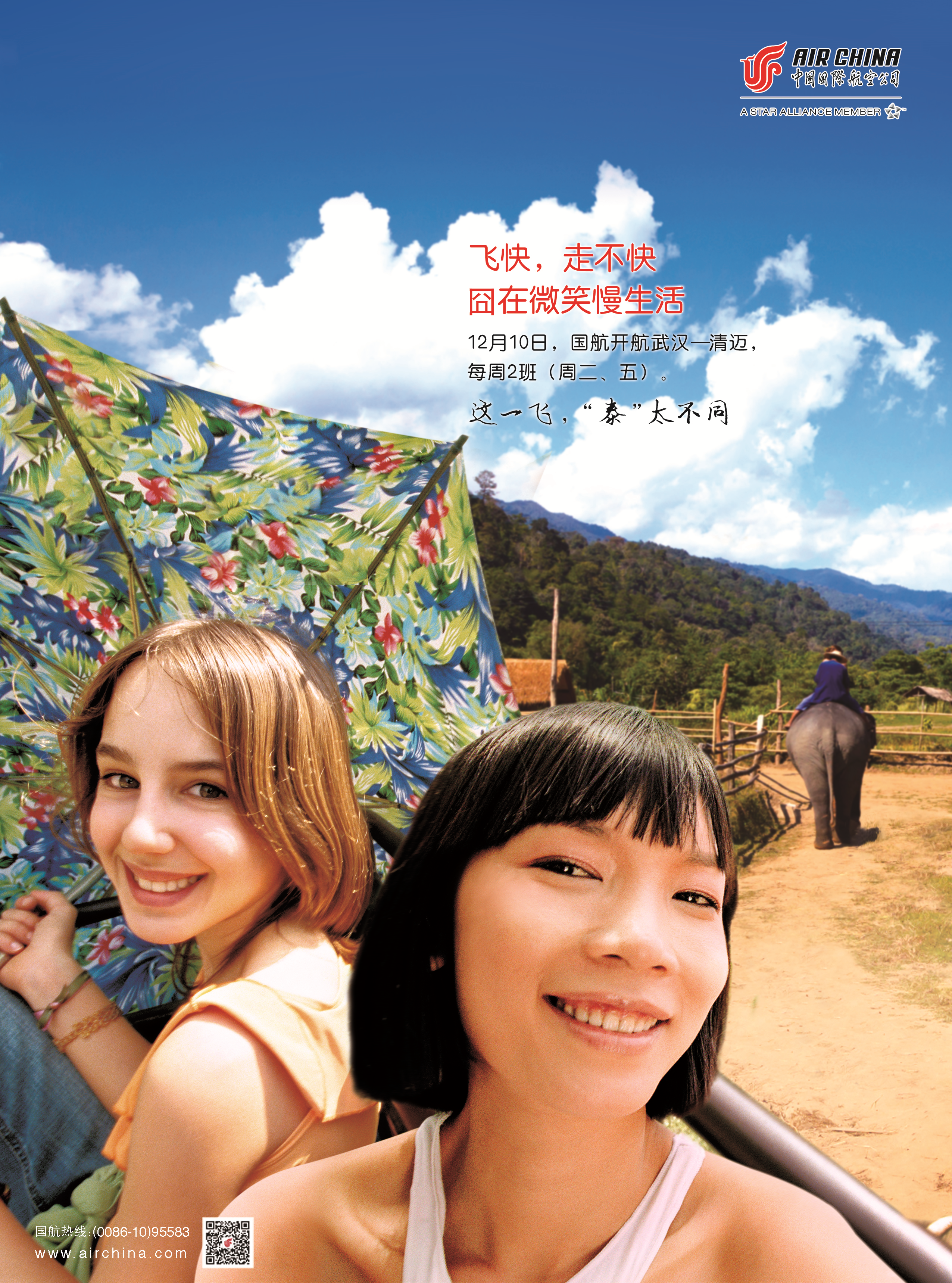 北京2013年12月3日電 /美通社/ -- 中國國際航空股份有限公司(以下簡稱“國航”)12月10日將新開武漢-清邁航線,航班號為CA705/6,每周2班,班期為周二、五。想去欣賞2013年票房奇跡《泰囧》中的街巷美景嗎?國航帶你從武漢始發(fā),從容體驗!